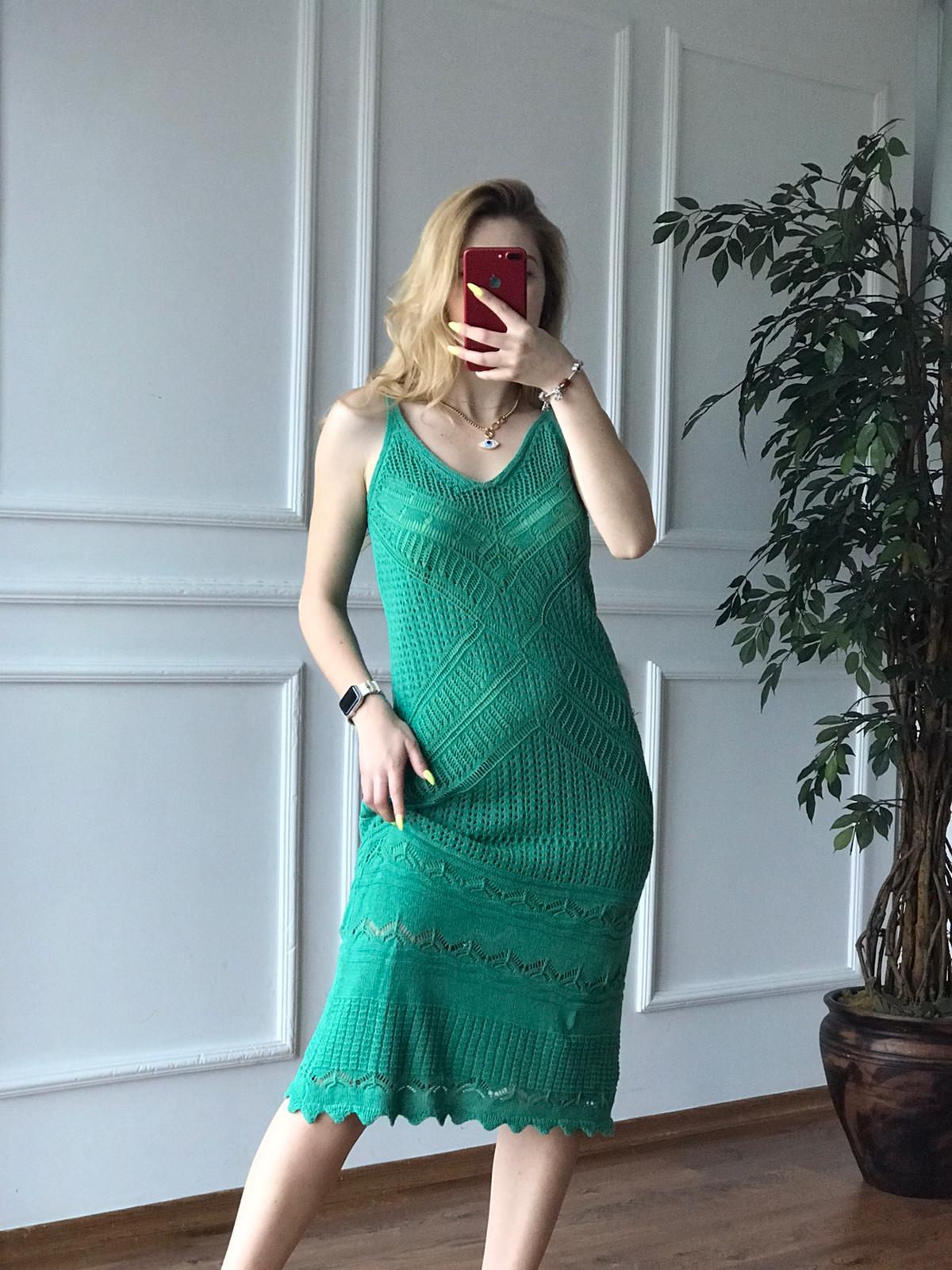 Askılı Ajur Desenli Triko Elbise 3194 Yeşil