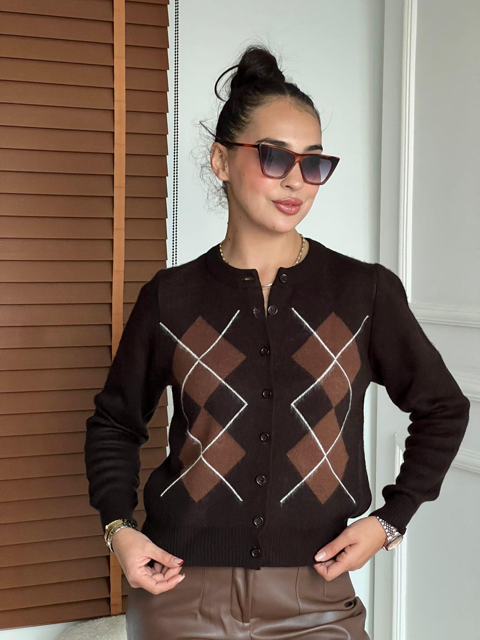 Baklava Desen Hırka 36822 Kahverengi (075000001 002)