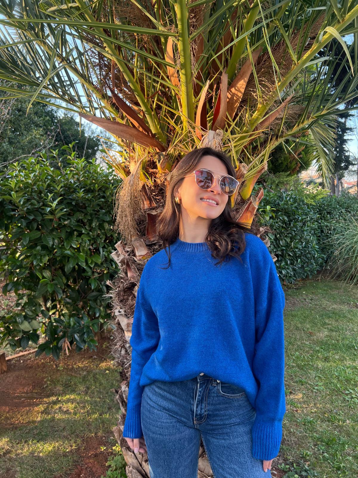 Bisiklet Yaka Kazak 21766 Saks Mavisi