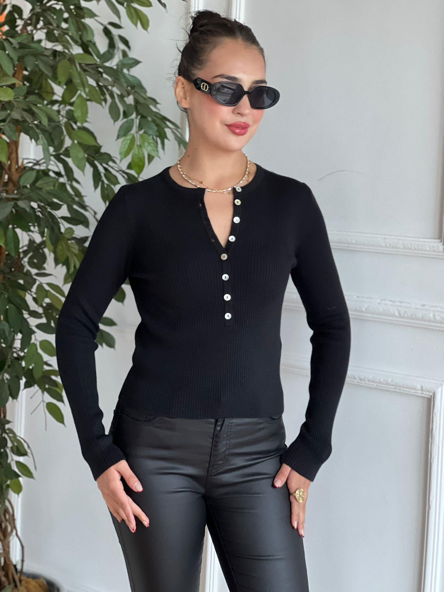Bisiklet Yaka Yünlü Düğmeli Triko Kazak 10819 Siyah (004000183 001)