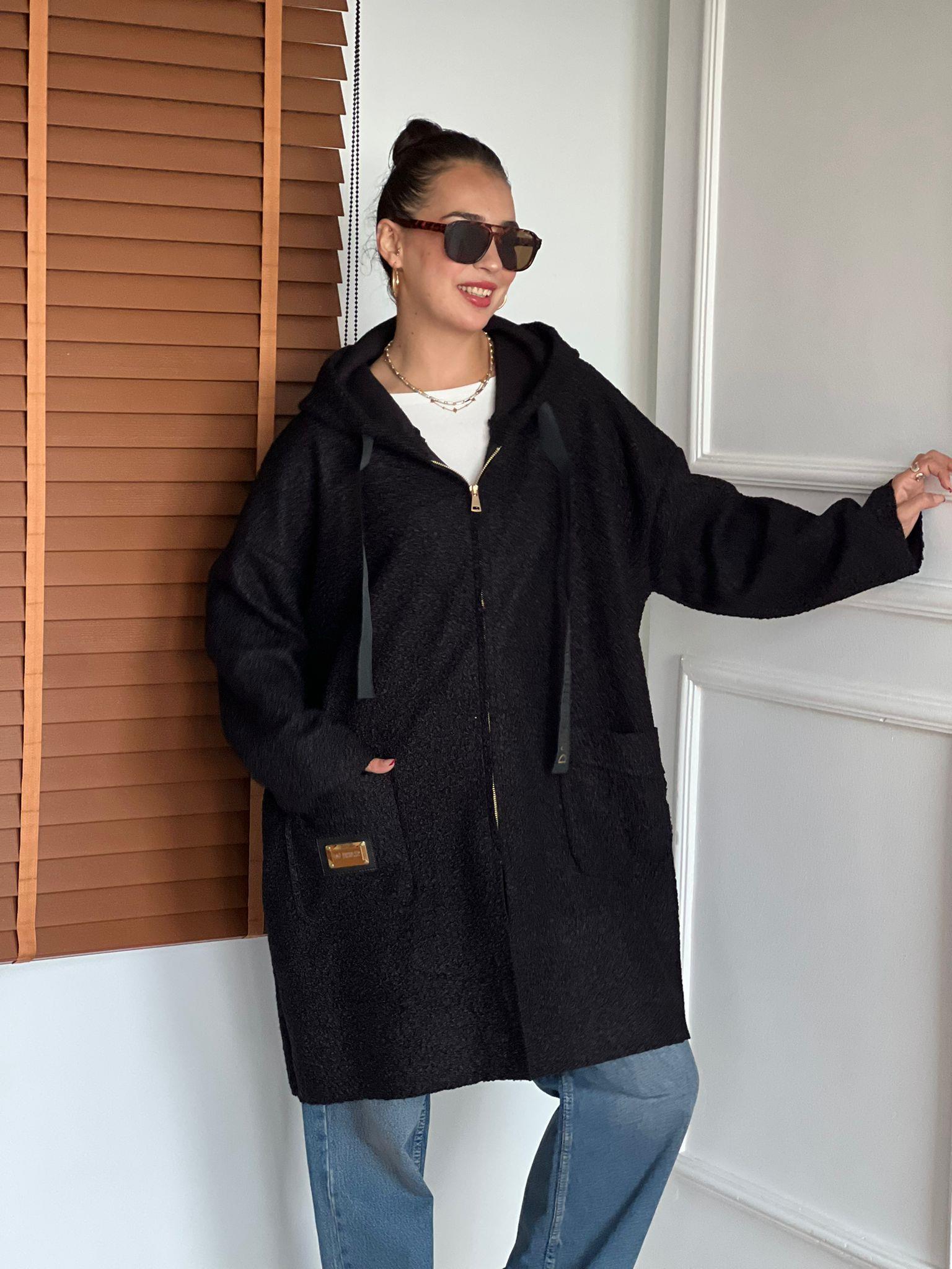 Buklet Kumaş Kapüşonlu Kaban 39113 Siyah (056000019 001)