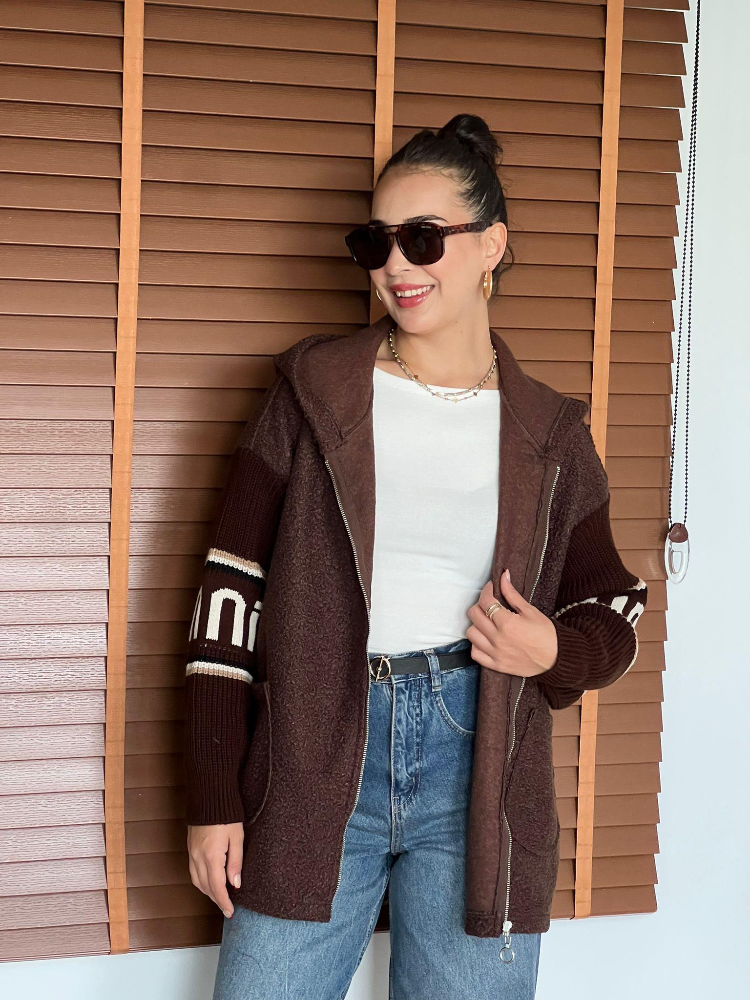 Buklet Kumaş Kolları Triko Garnili Mont 39177 Kahverengi