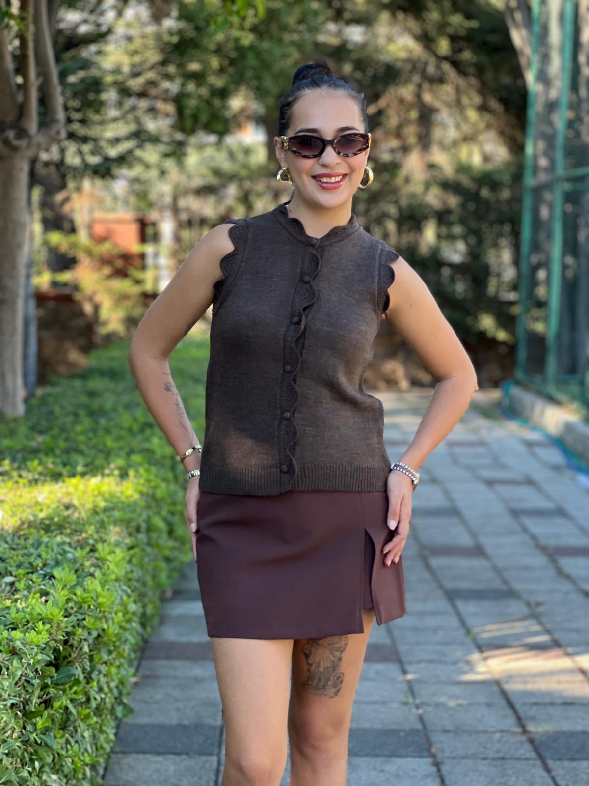Dantel Örgü Yelek 251013 Kahverengi (970000003 002)