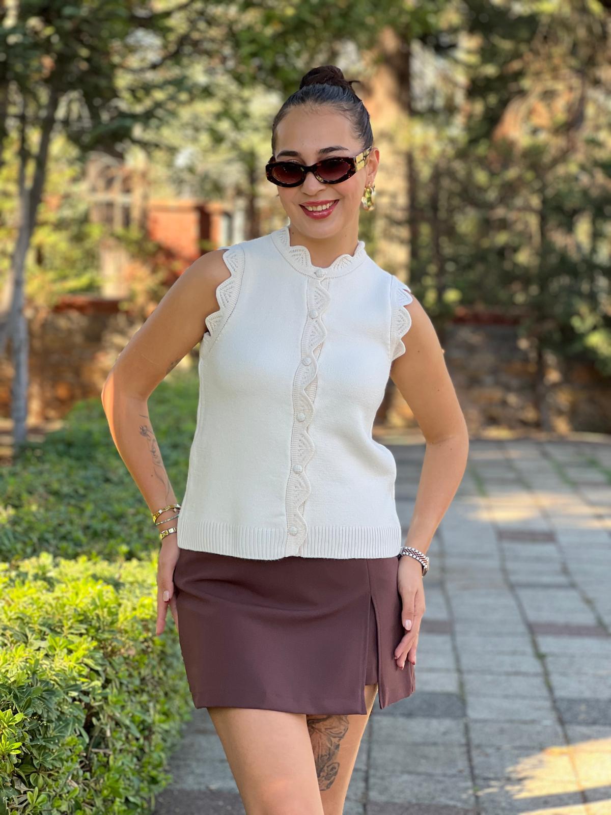 Dantel Örgü Yelek 251013 Krem (970000003 028)