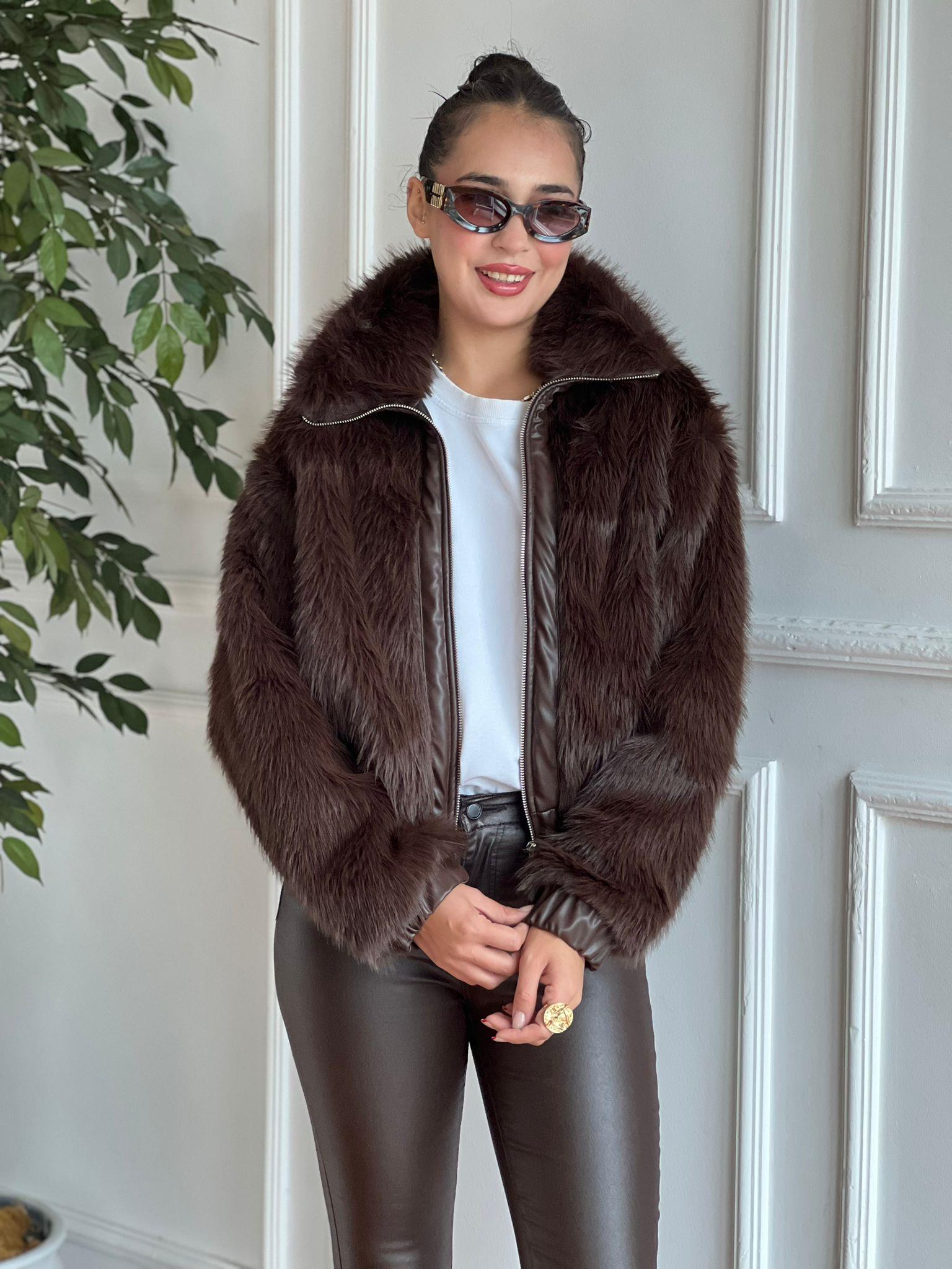 Deri Detaylı Kürk 10340 Kahverengi (096000003 002S)