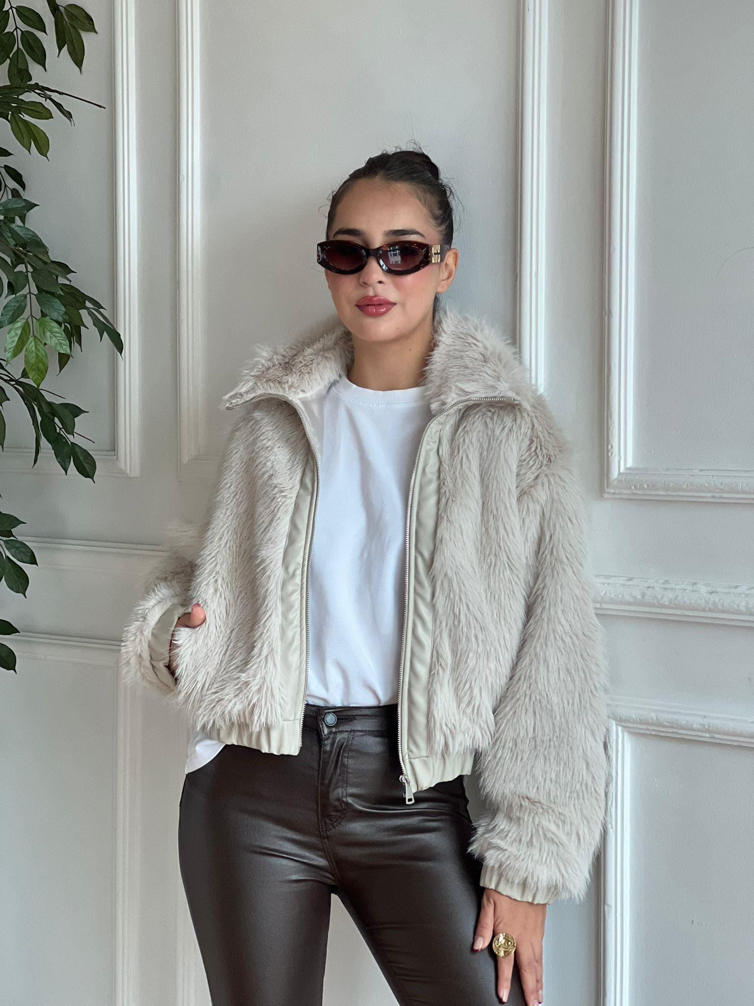 Deri Detaylı Kürk 10340 Taş