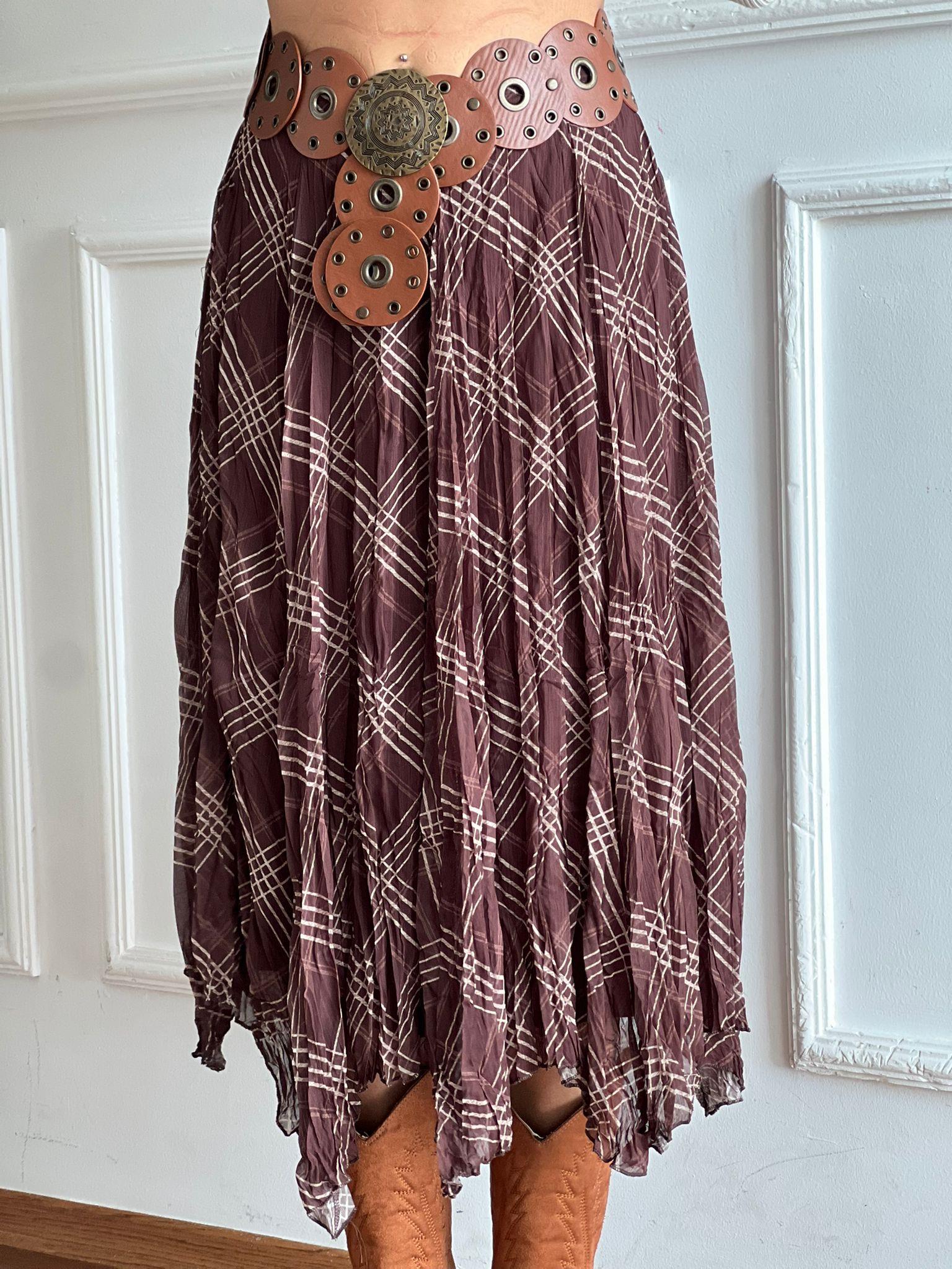 Ekose Desenli Asimetrik Etek 26-2210 Kahverengi