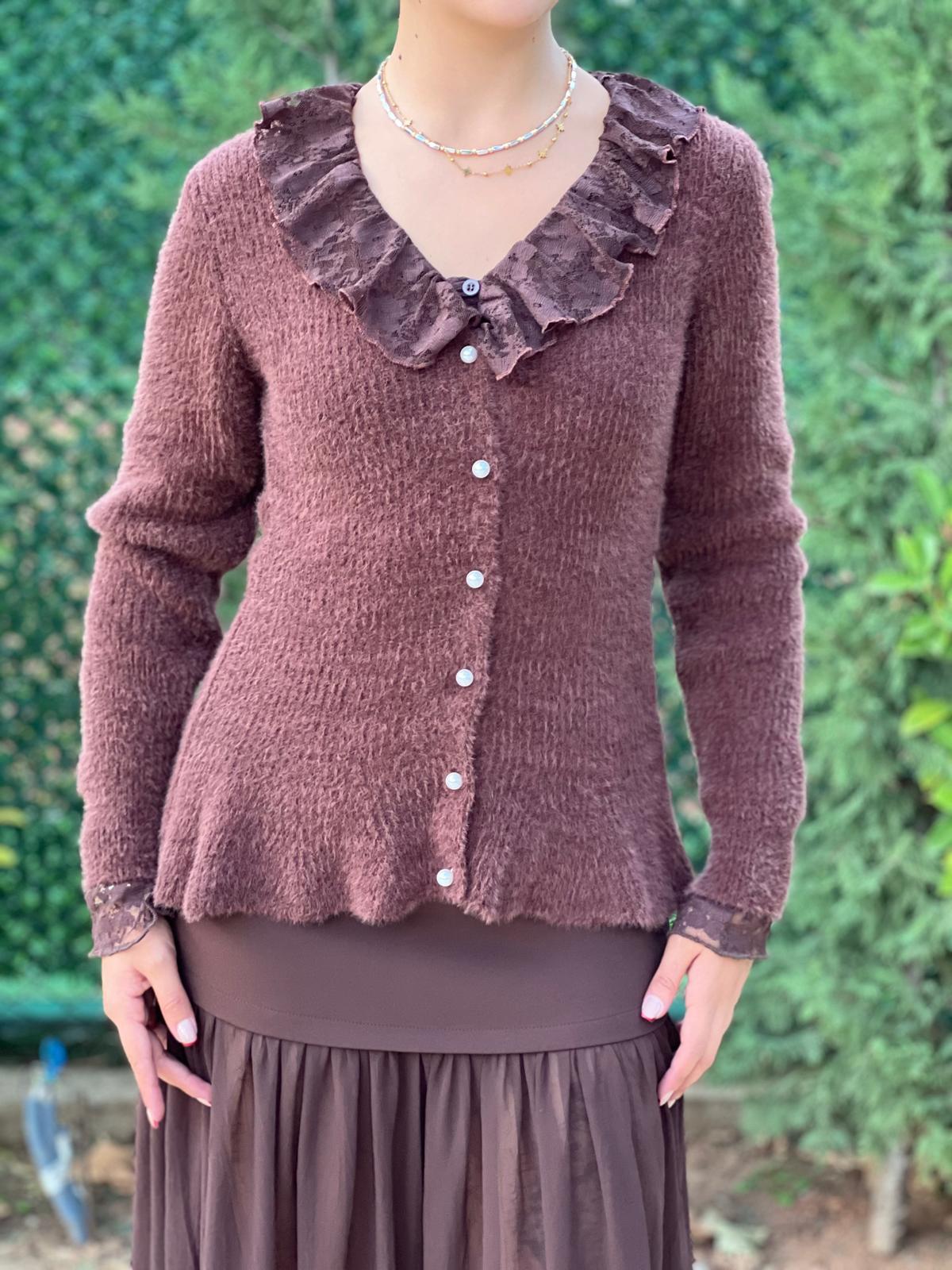 İnci Düğmeli Volanlı Hırka 25716 Kahverengi (795000015 002)