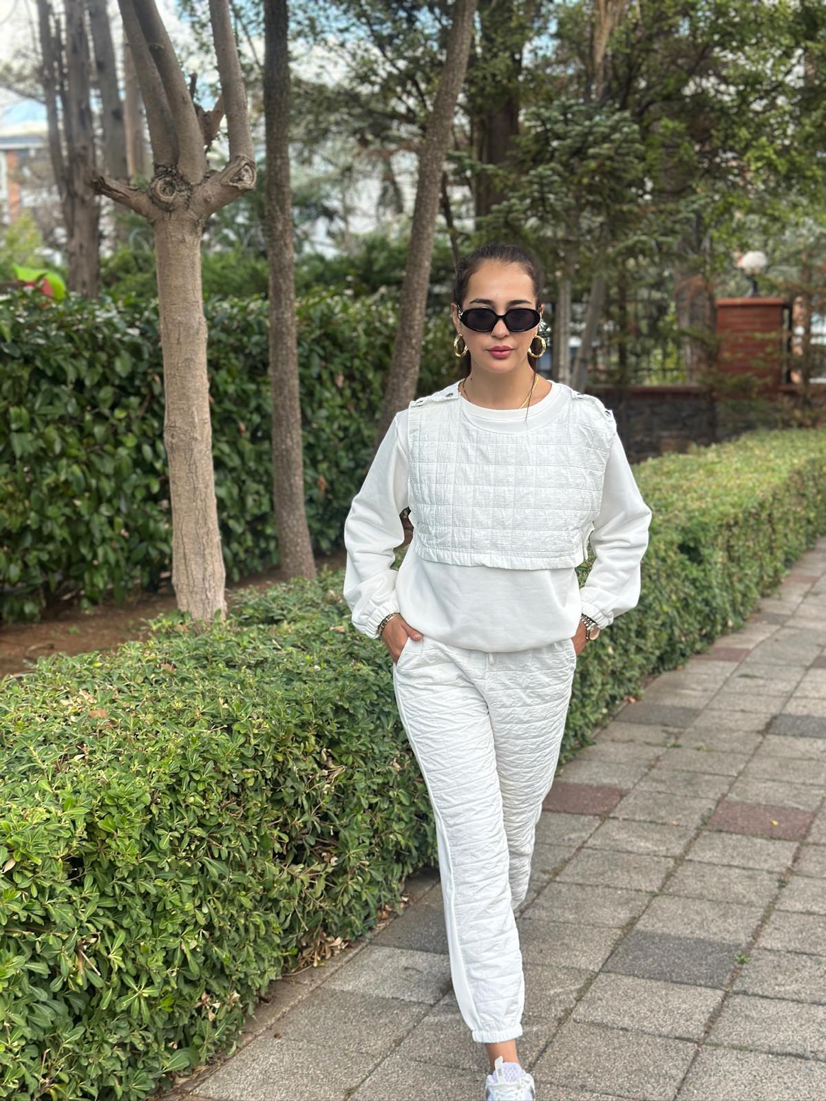 Kapitone Detaylı Eşofman Takımı 27293 Beyaz