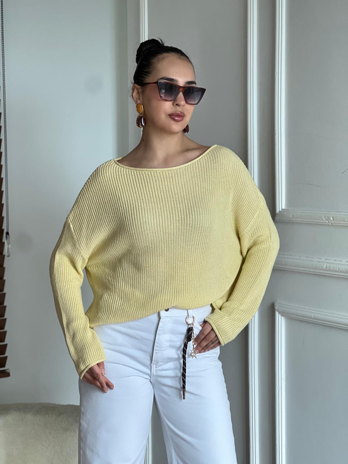Kayık Yaka Basic Triko Kazak 10804 Açık Sarı (004000188 85)