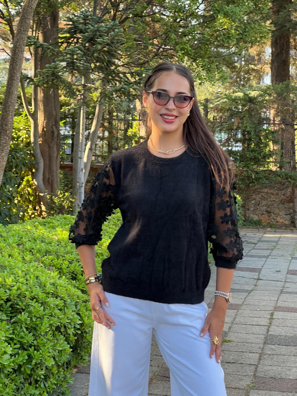 Kolu Tül Yumoş Kazak 10310 Siyah Kolu Tül Yumoş Kazak 10310 Ekru