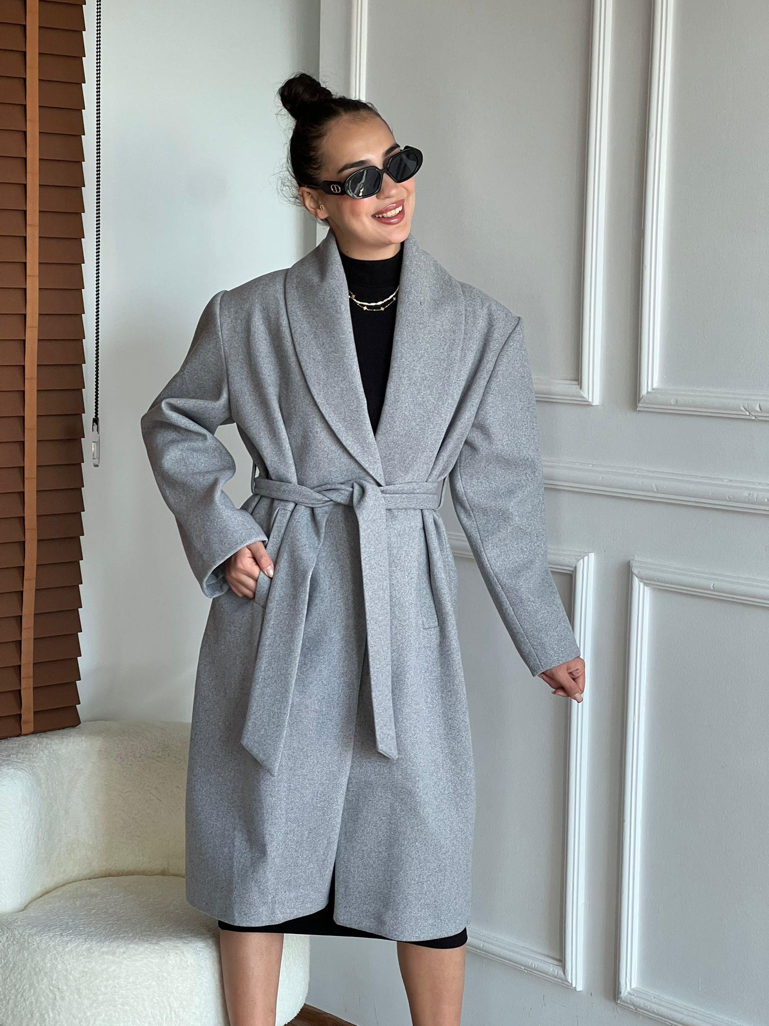 Kuşaklı Kaşe Kaban 99767 Gri (056000015 01436)