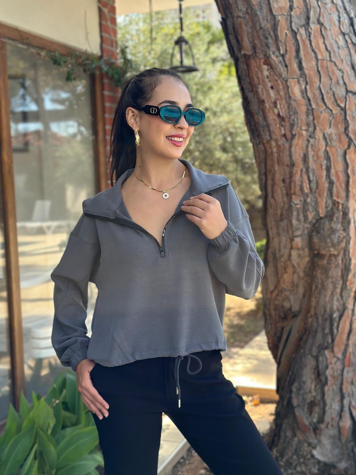 Modal Kumaş Fermuarlı Sweat 28181 Antrasit