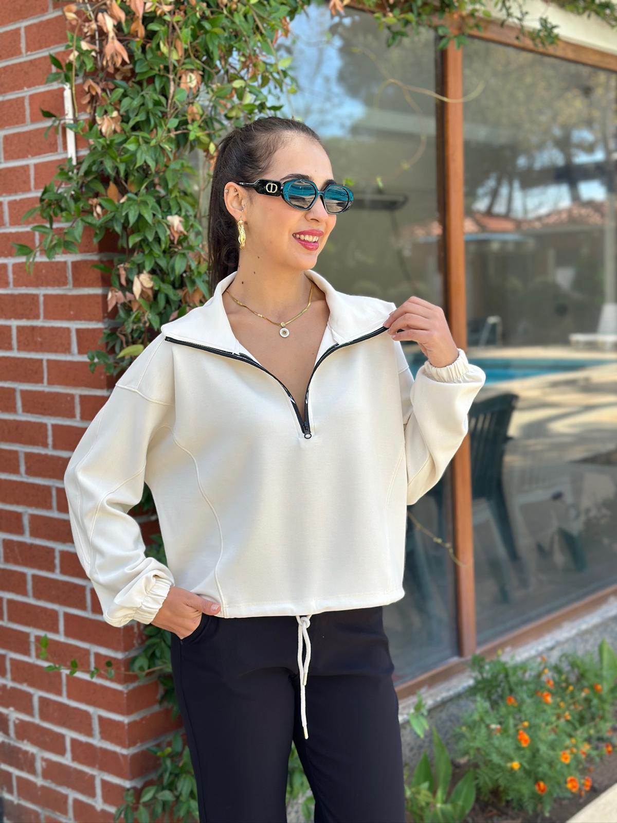 Modal Kumaş Fermuarlı Sweat 28181 Krem (001000181 028S)