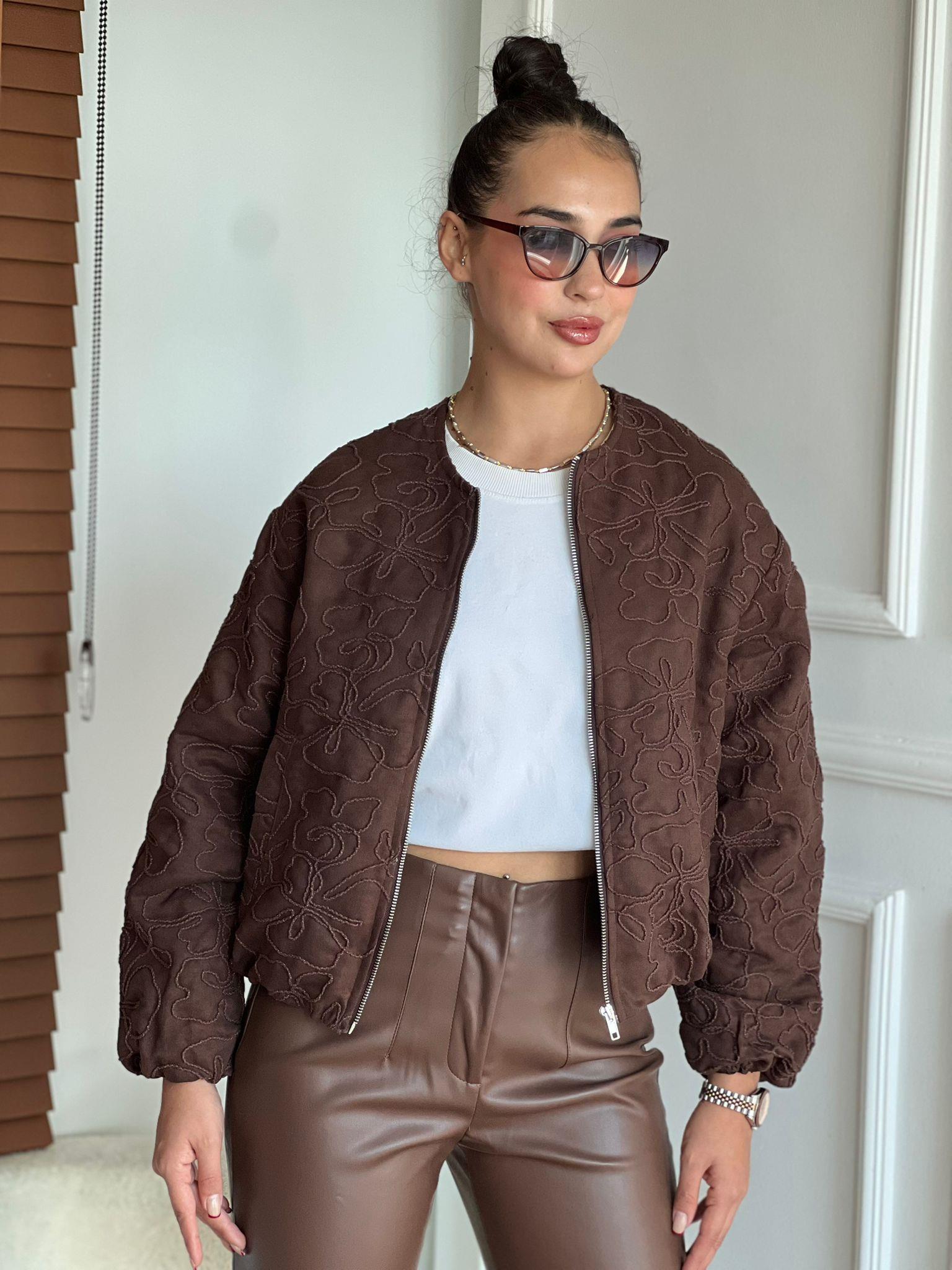Nakış Desenli Bomber Ceket 5880 Kahverengi (002000125 002S)