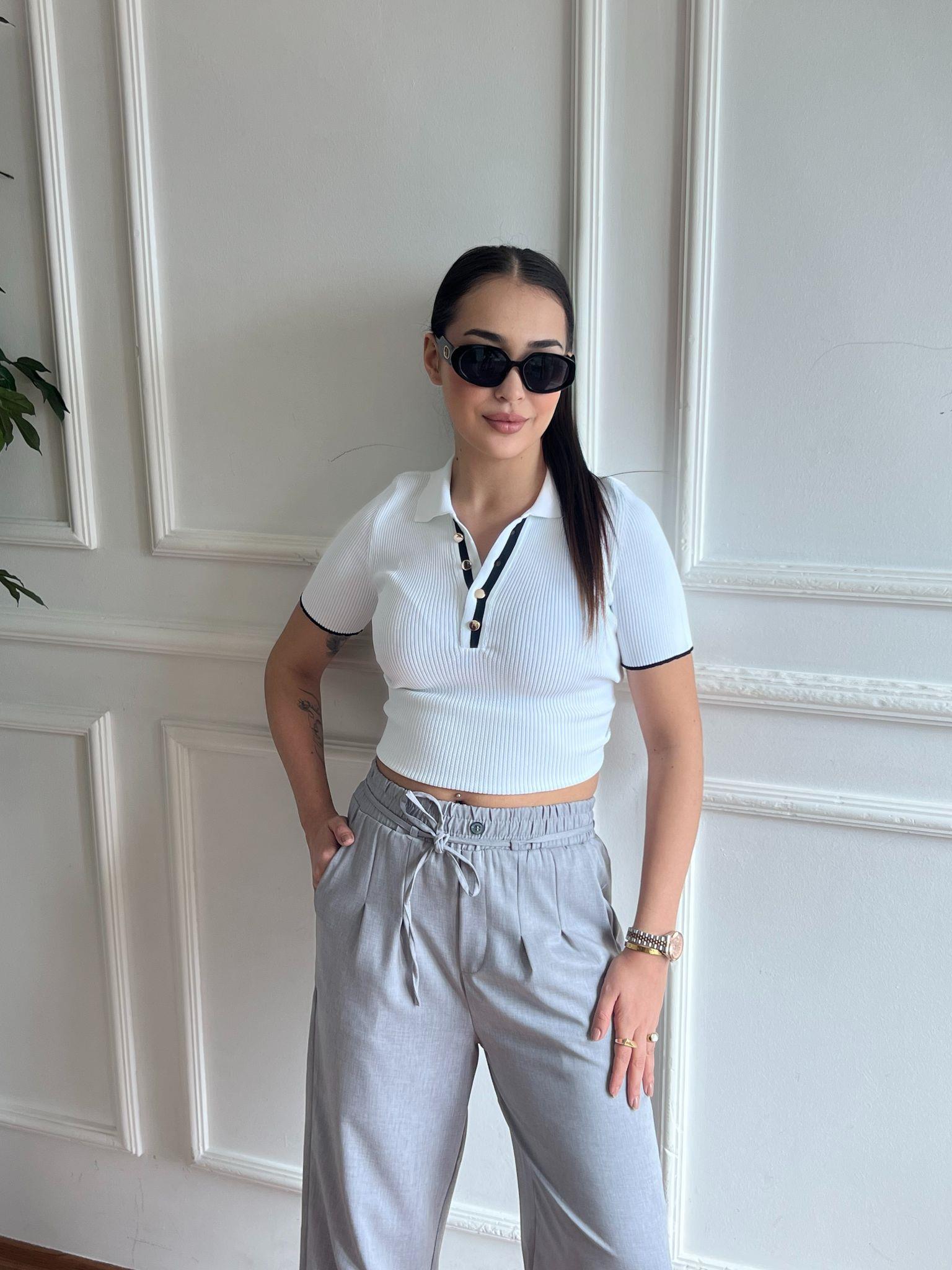 Polo Yaka Düğmeli Bluz 1358 Beyaz