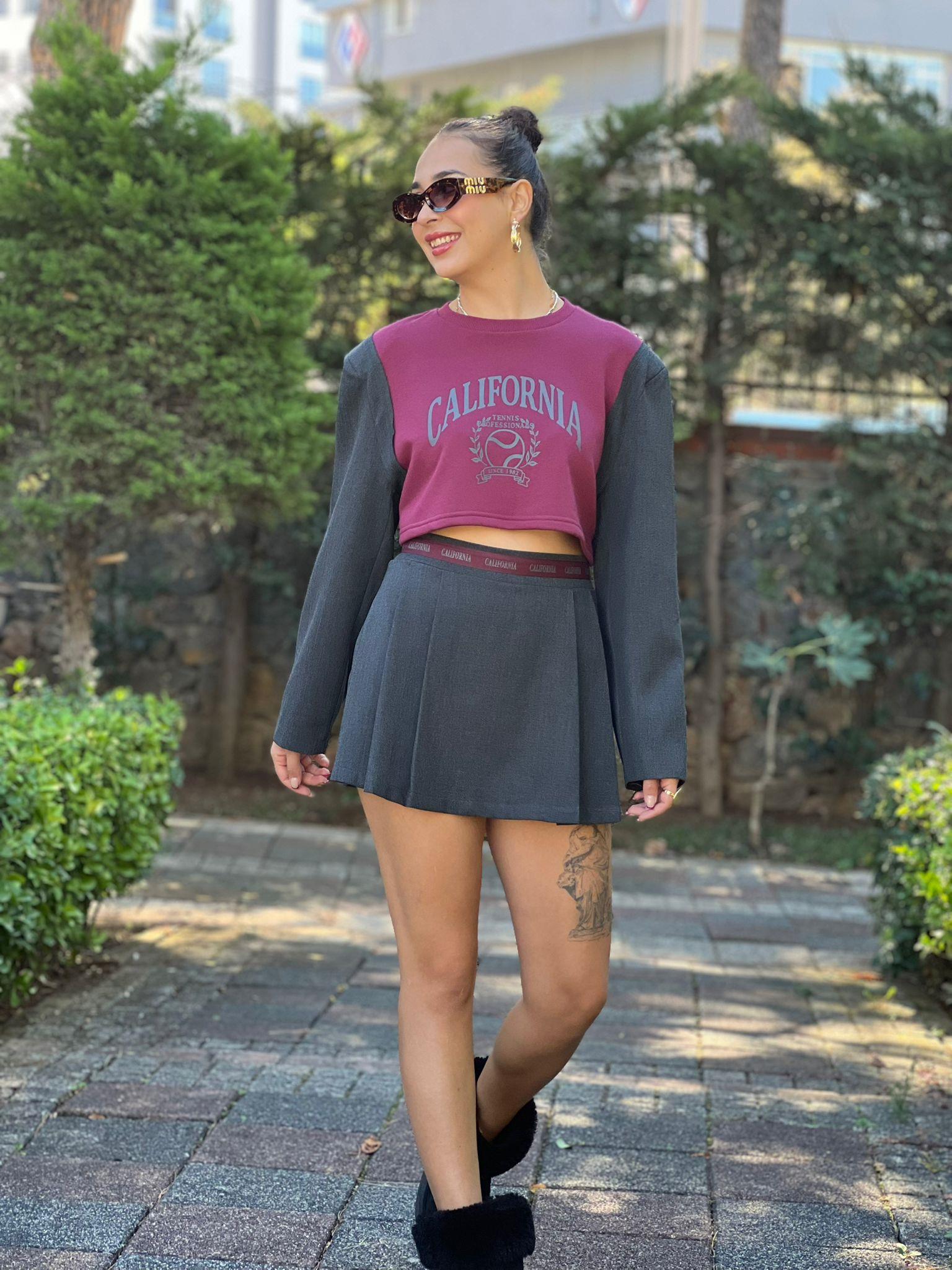 Şerit Bel Detaylı Pileli Mini Şort Etek 00794 Antrasit (014000010 020S)