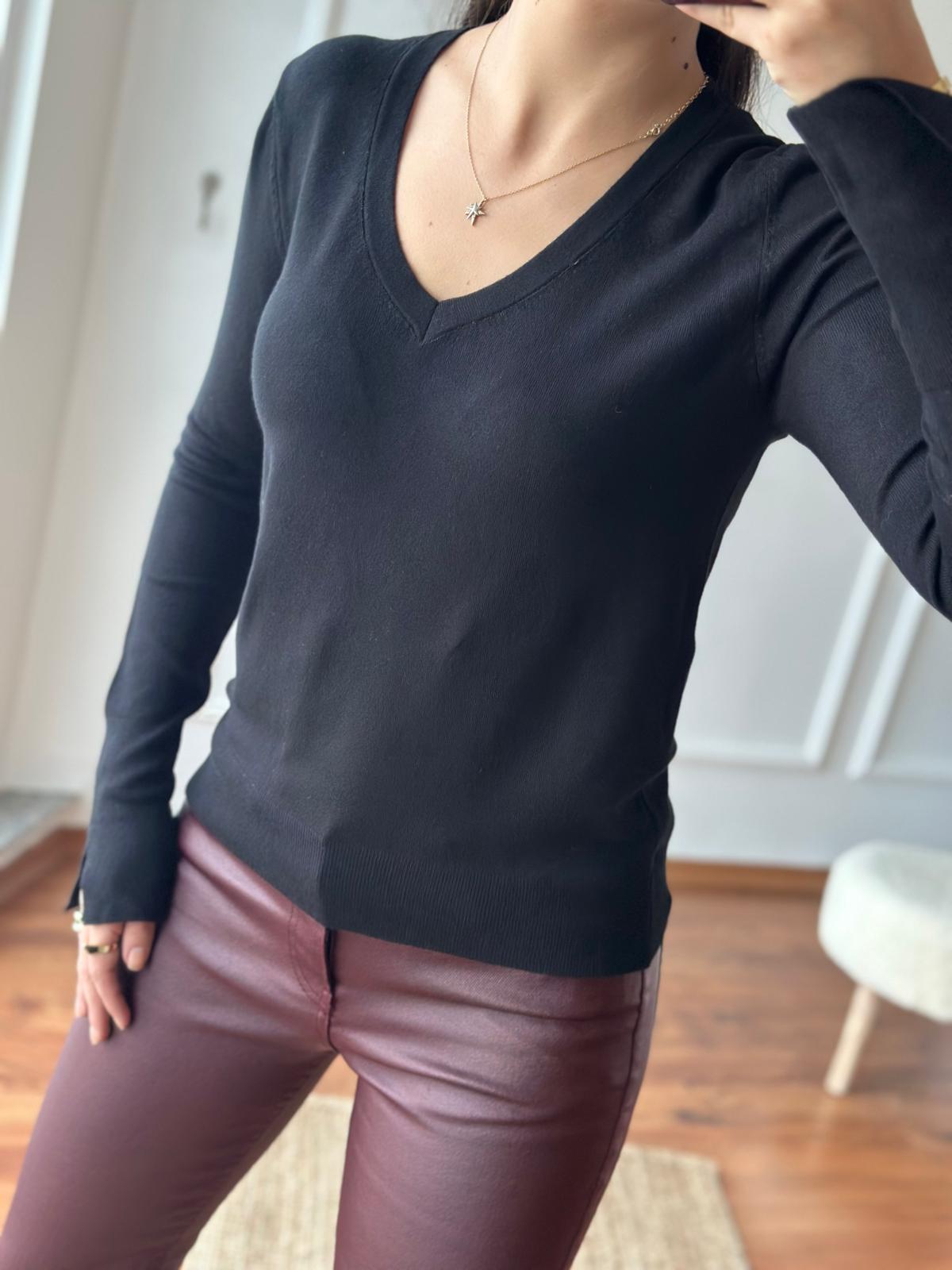 V Yaka Kolu Yırtmaçlı Kazak 10427 Siyah (004000088 001)