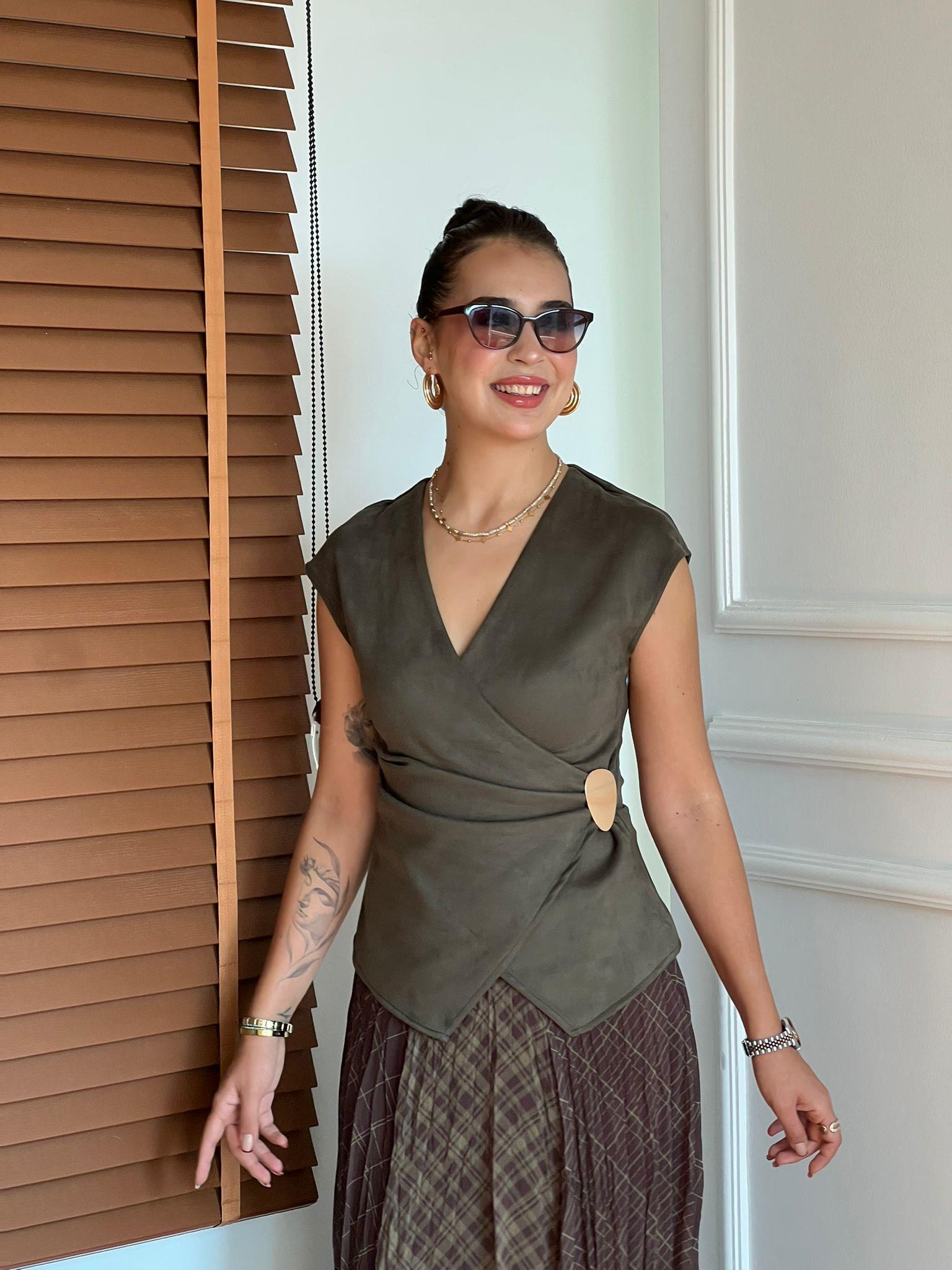 Yanları Pileli Süet Bluz 2517648 Haki (001000185 008S)