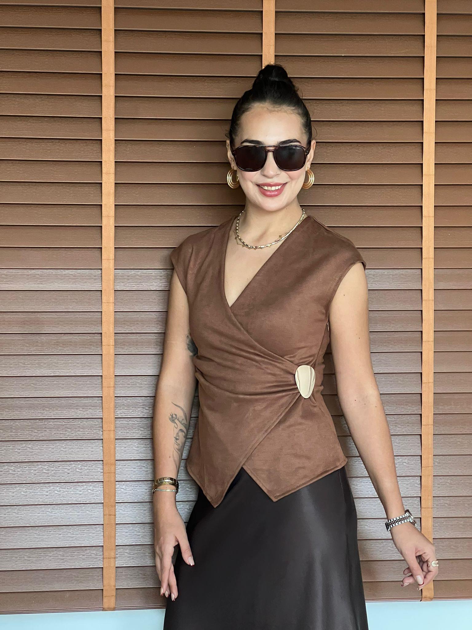 Yanları Pileli Süet Bluz 2517648 Taba (001000185 007S)