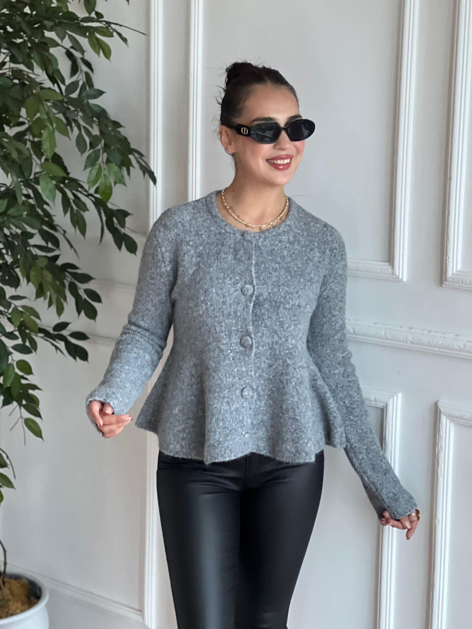 Yumuşak Dokulu Peplum Düğmeli Hırka Füme (005000150 055)